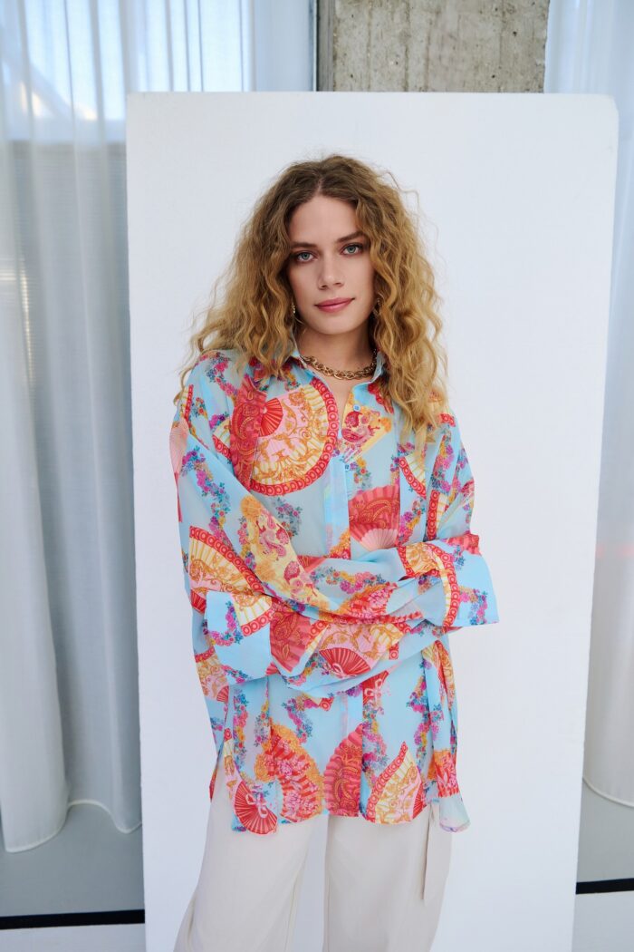 Structured with subtle shoulder pads , it enhances the silhouette while maintaining an elegant , feminine balance. The sleeves and the classic collar add a polished touch , making it ideal for both day and evening styling.