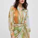 The wrap ( croise ) style ties at the waist , creating a flattering fit while adding a soft, fluid movement. Its mini length brings a fresh, contemporary edge, making it perfect for both elevated daywear and evening looks.A statement piece that pairs perfectly with the matching shirt , for a complete statement look.